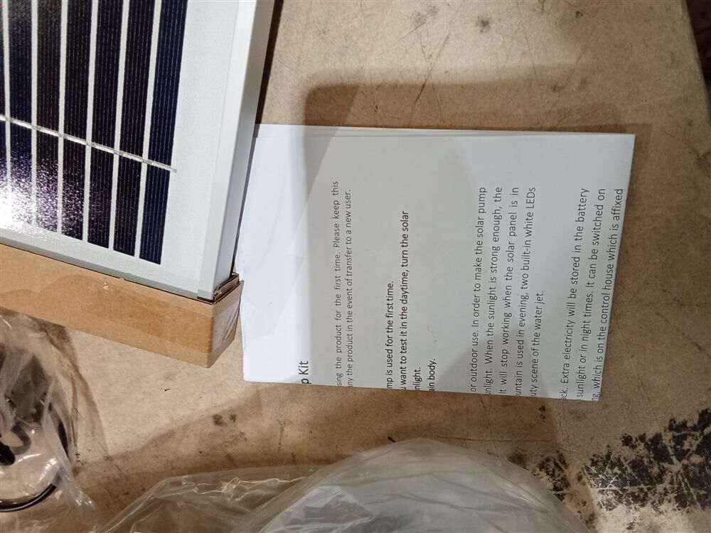 Solar panel, rechargeable battery, and water pump included