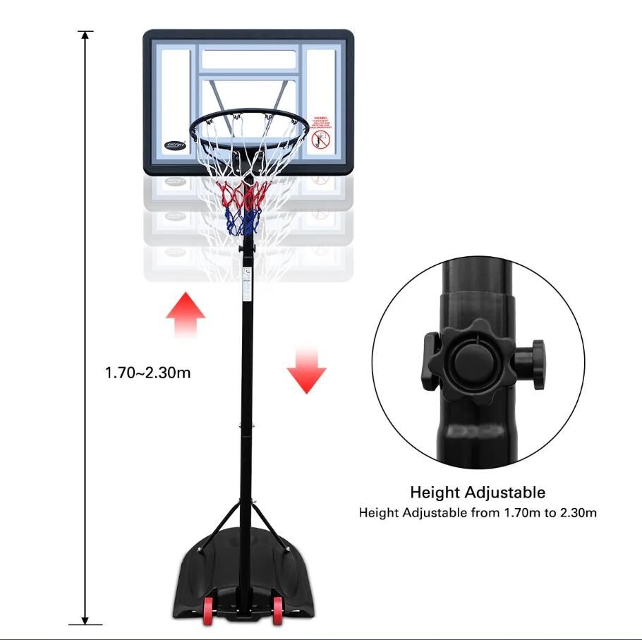 Genki Basketball Hoop Stand System 1.7-2.3m Height Adjustable Net Ring Backboard