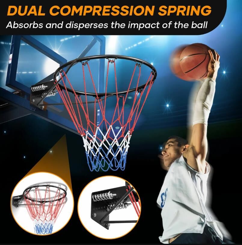 - Shock-Absorbing Springs: Utilizing a double-loop spring system, it effectively reduces vibration and shaking upon impact for a smoother basketball experience.