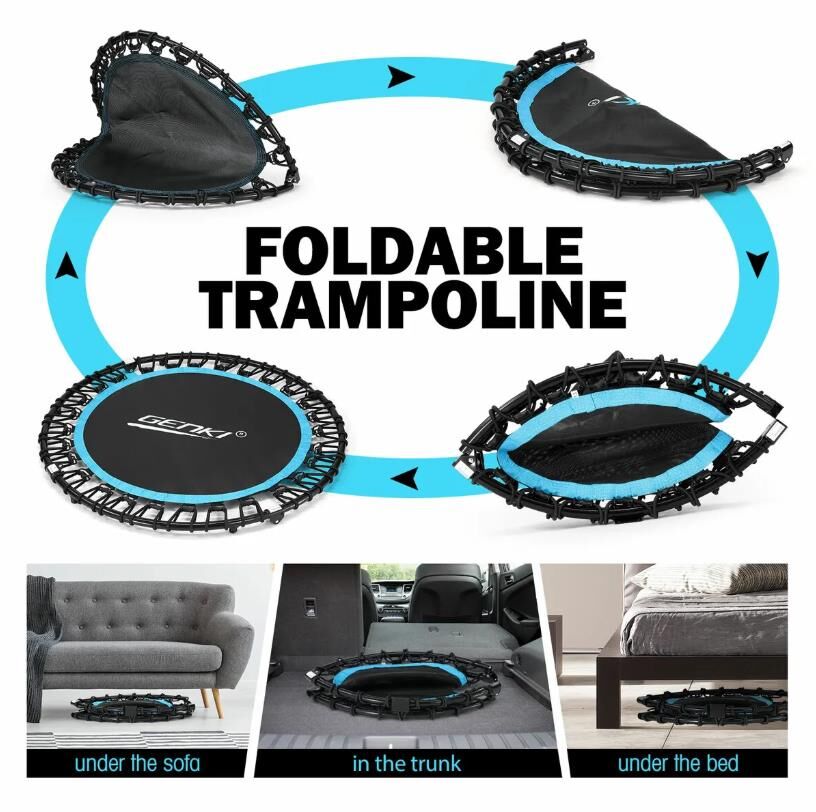 - Foldable, Compact and Portable: Our exercise trampoline provides a low impact cardiovascular workout, ideal for any indoor or garage space. The heavy-duty polypropylene surface and rubber-tipped legs are made to last.