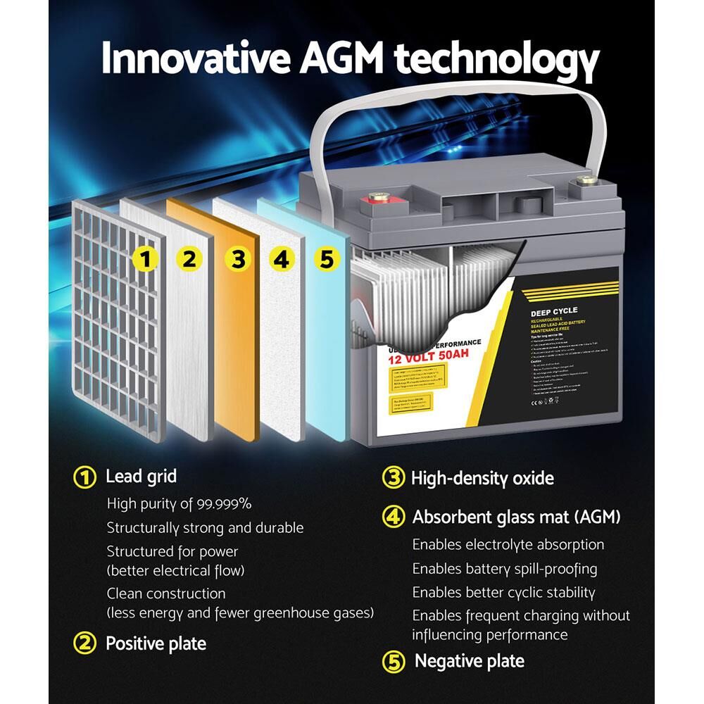 Giantz 12V 50Ah AGM Deep Cycle Battery Marine Sealed Power Solar 4WD Camping