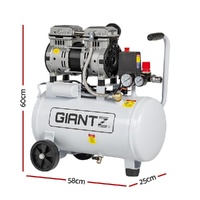 Giantz 24L Air Compressor Quiet 0.75HP Oil-Free Portable Tyre Inflator 40L/Min