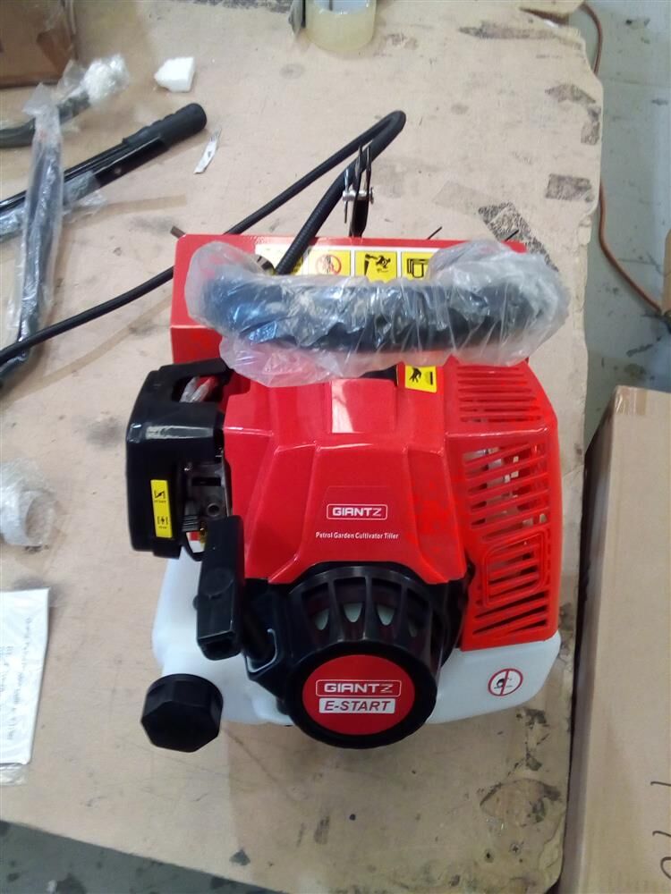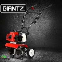 Get the earth moving quick and easy with the GIANTZ Hand-held Tiller. Featuring a 63cc 7500rpm±500rpm 2-stroke petrol motor, the tiller churns out soil deep and wide with its 24 teeth of hardened steel tines. The 4 blades allows you to till an extra-wide swath of 400mm and up to 150mm in depth. In other words, you only need one pass with the tiller to pulverise the soil and get the right seedbed for your favourite crops. Operating the tiller is just as easy with its pull-start improved engine, steady handle and quick-release hand throttle control and all-terrain rubber tyres to transform back-breaking tilling work into a ground-breaking stroll. And when the tilling is done, just fold away the tiller and store with the rest of your tools. Ideal for the home gardener or small-scale commercial grower. This item comes with 1 year warranty.
