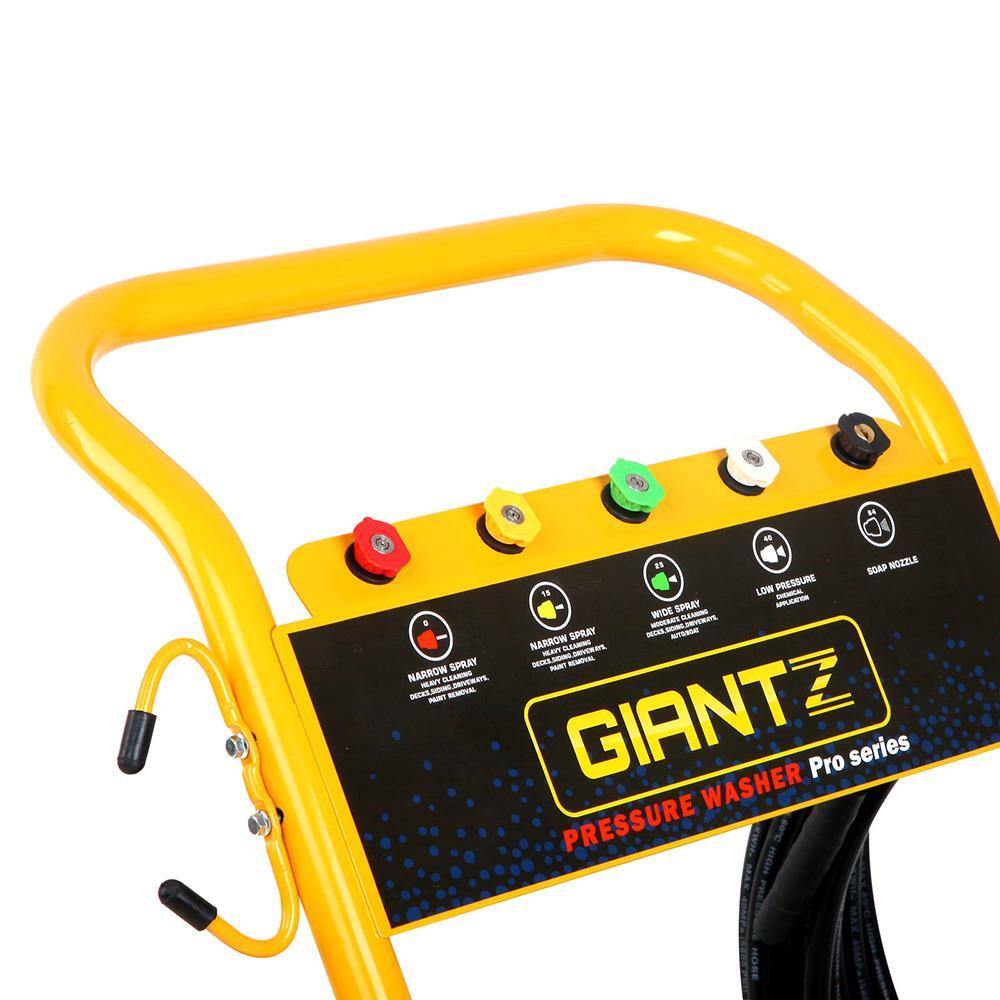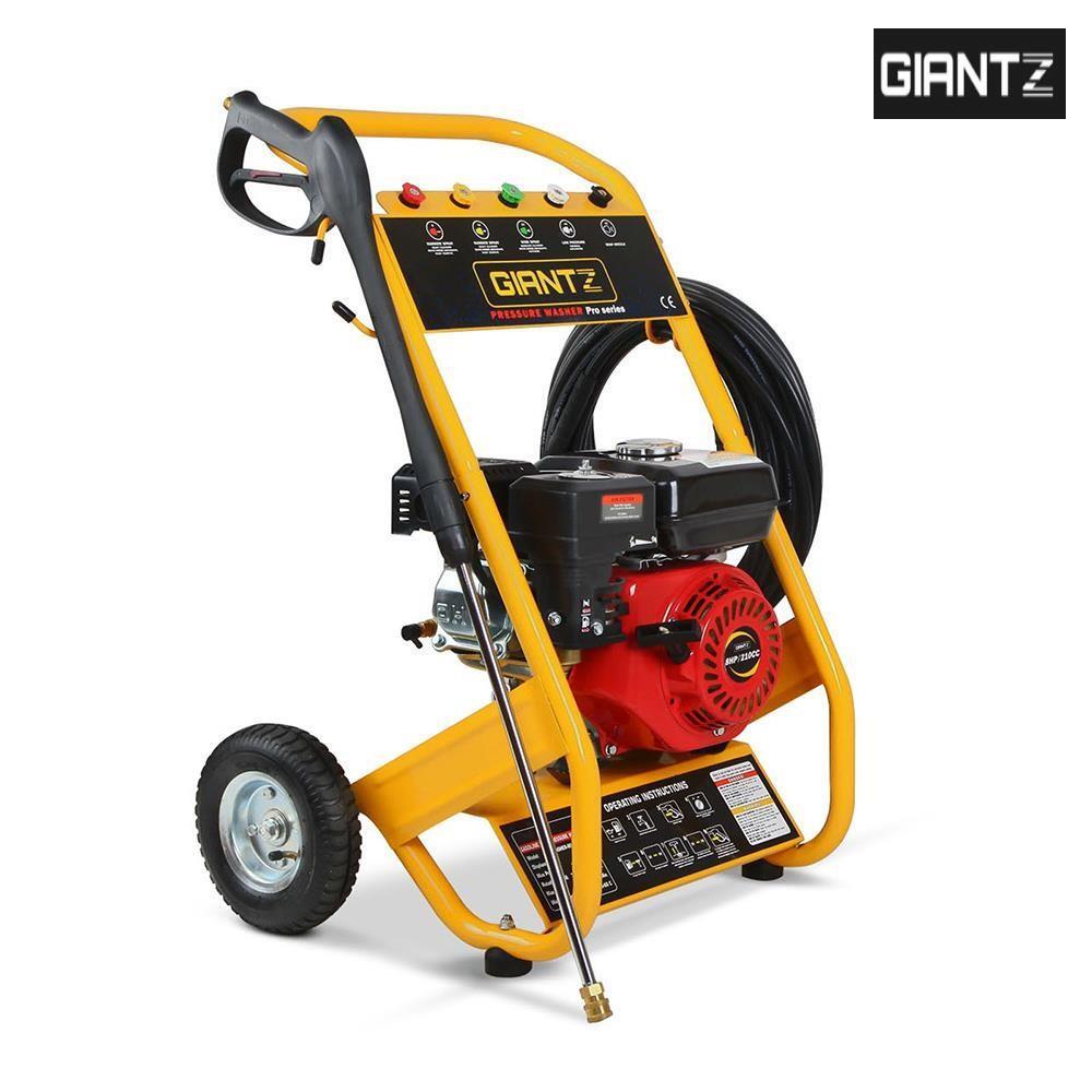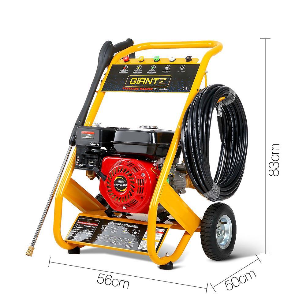 Powerful jets of water for a cleaning experience like no other. The GIANTZ 8hp Pro-series High Pressure Washer makes light work cleaning cars, walls, boats, decks, footpaths, pavements or any other surface of tough dirt and grime in unrivalled performance.