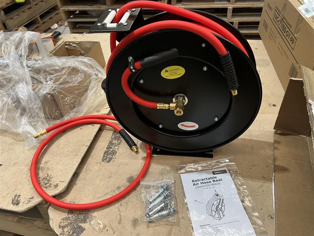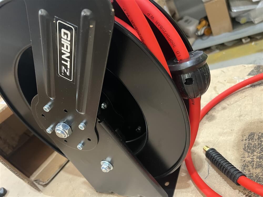 The Giantz Auto Rewind Hose Reel offers a modern solution for hose storage. Its space-saving design allows for easy mounting on the ground, walls, overhead, or vehicles. Made from durable steel, this hose reel features a reliable automatic rewind system, perfect for managing air hoses rated up to 300 PSI, ensuring efficient organization in any workspace.
