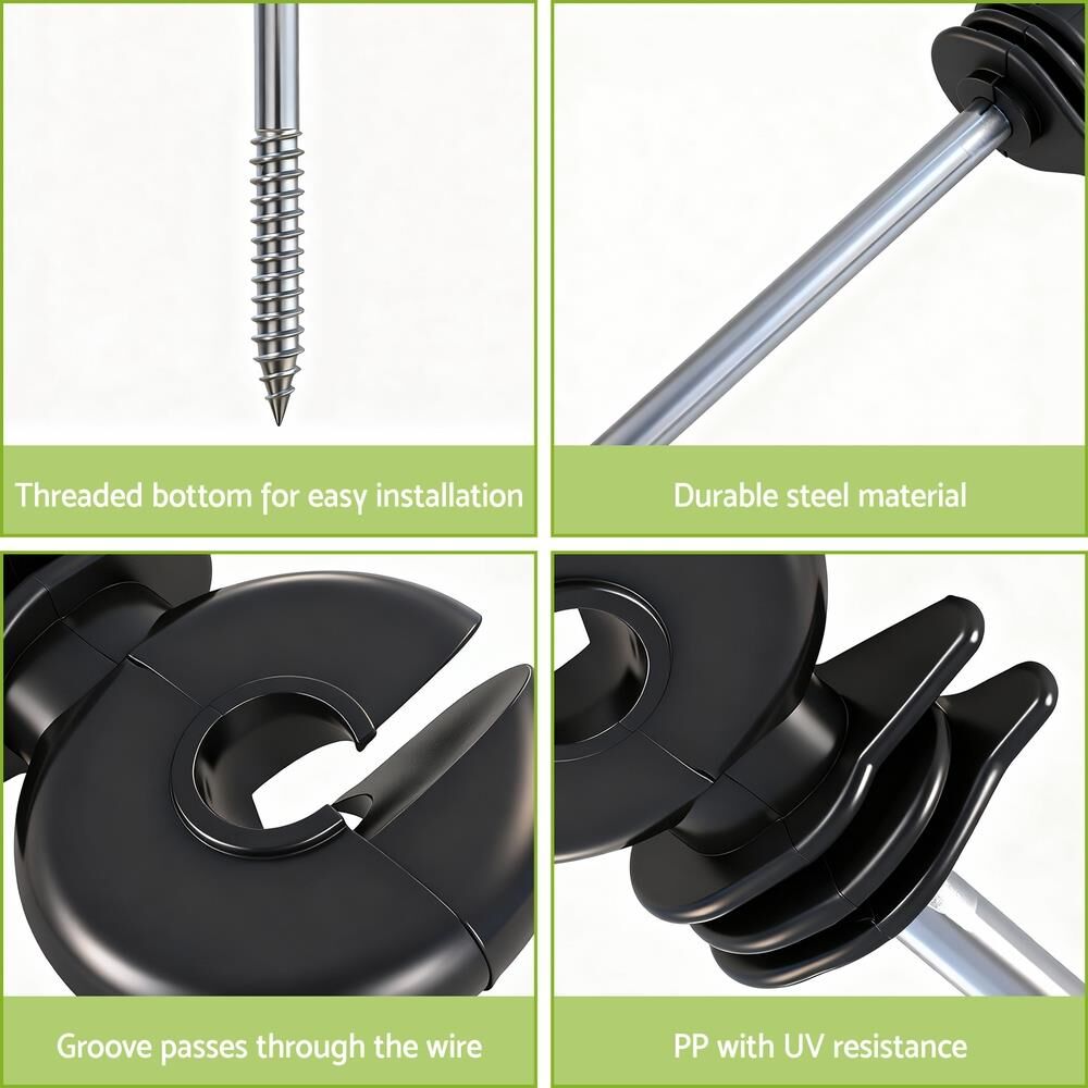 Giantz Electric Fence Ring Insulators 100pcs Stand off Screw in Insulator Black