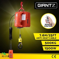 Giantz Electric Hoist Winch 500KG Wired/Wireless Remote Control Cable 7.6M