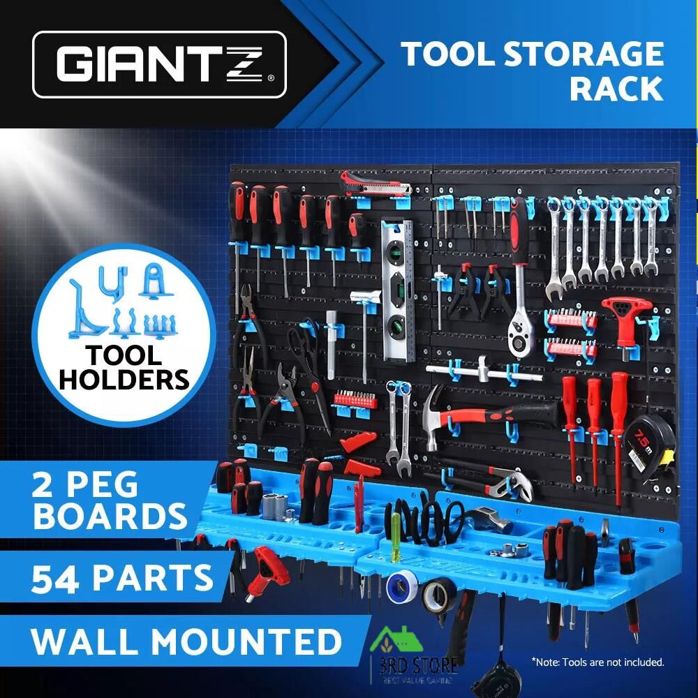 Are your tools always cluttering up your garage due to inadequate storage space? Well, now you can get more organised with our Giantz Tool Storage Rack. The rack is the perfect space-saving solution for storing your tools and accessories in your garage or storage room and makes it easier for you to find the rights tools when you need them. The two ultra-durable peg boards are simple to mount on the wall and feature an upgraded mounting slot design for extra stability in securing your tools. Then just insert the two shelves and fifty tool holders into the peg board slots for instant storage. The best part is that the tool holders are removable, so that you can easily change their layout on the peg board to accommodate future additions to your ever-growing tool collection.