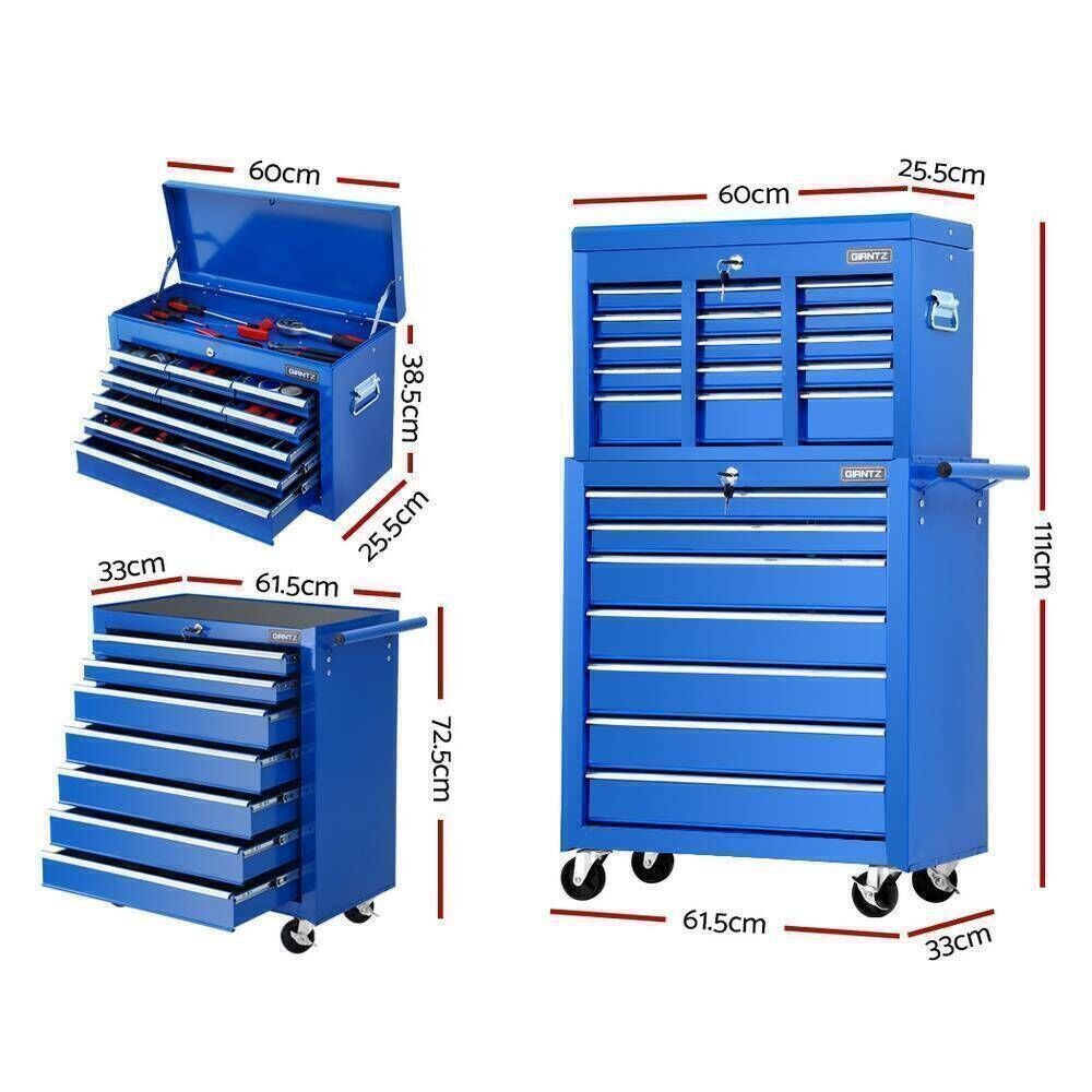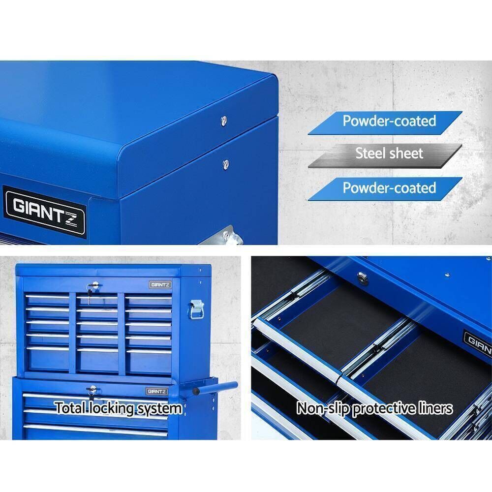 Giantz Tool Box Chest Cabinet Trolley 16 Drawers Toolbox Garage Storage Blue