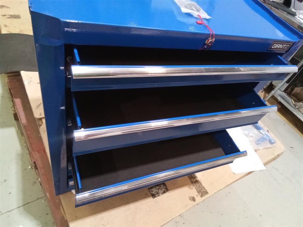 This robust, multi-drawer Giantz Tool Trolley is an essential for any workshop. Crafted from durable steel, it features smooth ball-bearing slides for easy access and a secure lock system for safety. Its spacious design includes varying drawer sizes to accommodate tools of all shapes, complete with non-slip liners. The chest is also mounted on omni-directional castors with locakble front wheels, ensuring a smooth maneuverability and stable positioning. Sleek and functional, it's perfect for organizing and protecting your valuable tools.