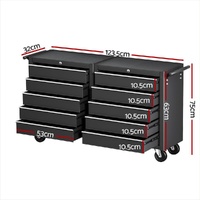 Giantz Tool Chest Trolley 10 Drawers Toolbox Storage Black