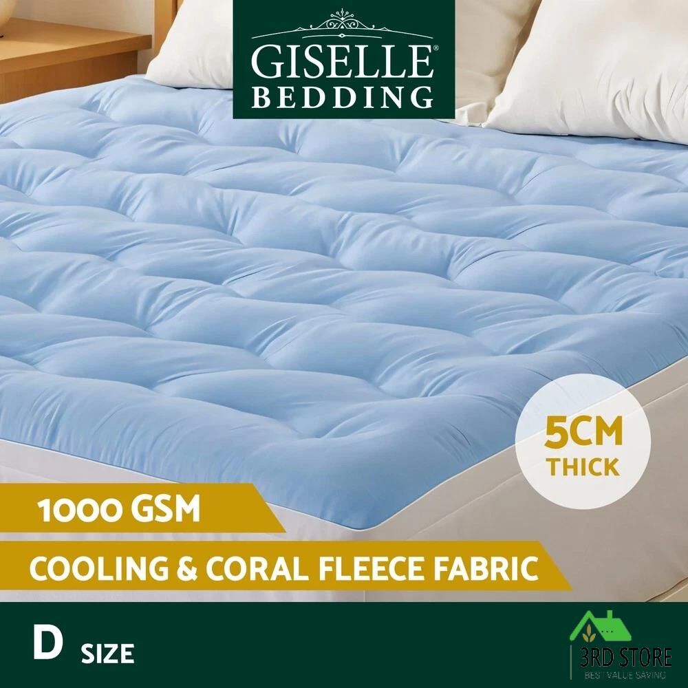 Enhance your sleep with Giselle Bedding's 5cm pillowtop topper featuring innovative double-sided design. The cooling fabric side wicks moisture while the coral fleece provides plush warmth.1000GSM hollow fiber filling and 3D wave quilting create balanced support that fits mattresses up to 45cm deep. This highly breathable topper reduces heat buildup and comes vacuum-packed for hygiene. Machine washable for effortless maintenance.