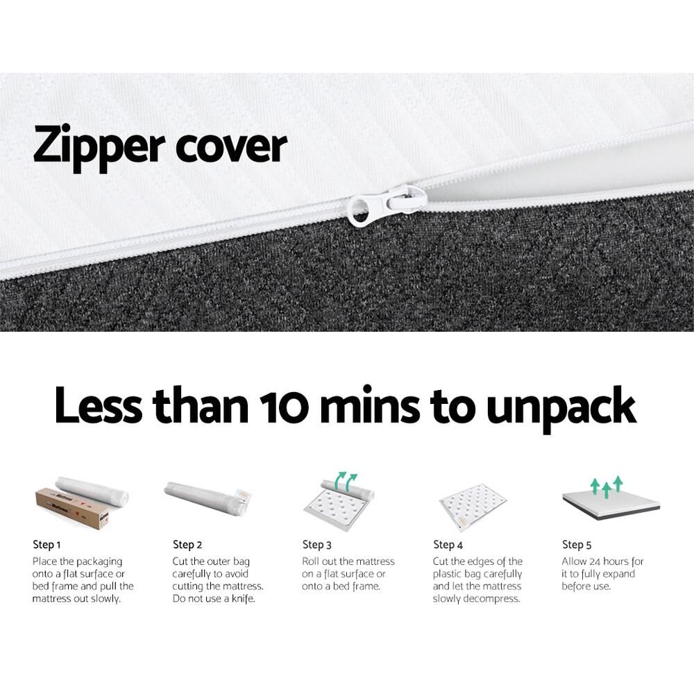 Sink into comfort with the luxuriously soft and sleep-inducing Giselle Bedding Memory Foam Mattress. The mattress features a multi-layer foam structure and dual-sided firmness to ensure the ultimate comfort. The top layer features CertiPUR-US certified cool gel memory foam to keep you at the ideal temperature during the night. The middle layer is constructed of egg-crate foam to provide comfort to back and side sleepers, as it provides additional support on the spine, hips and shoulders. The final layer consists of high-density foam to promote better sleep and pressure relief. The mattress overall has a soft-medium firmness that is ideal for a wide range of sleepers. The mattress is made from hypoallergenic, dust-mite-resistant jacquard knitted fabric and has a washable, removable zip cover for easy cleaning. With such amazing support, you'll experience zero partner disturbance throughout the night, empowering you to get a great night's sleep every night. Your mattress arrives perfectly vacuum-packed and ready for you to remove and expand. What are you waiting for? Available in Single, Double, Queen and King sizes, you can sleep happy on your brand-new Giselle Bedding Memory Foam Mattress.