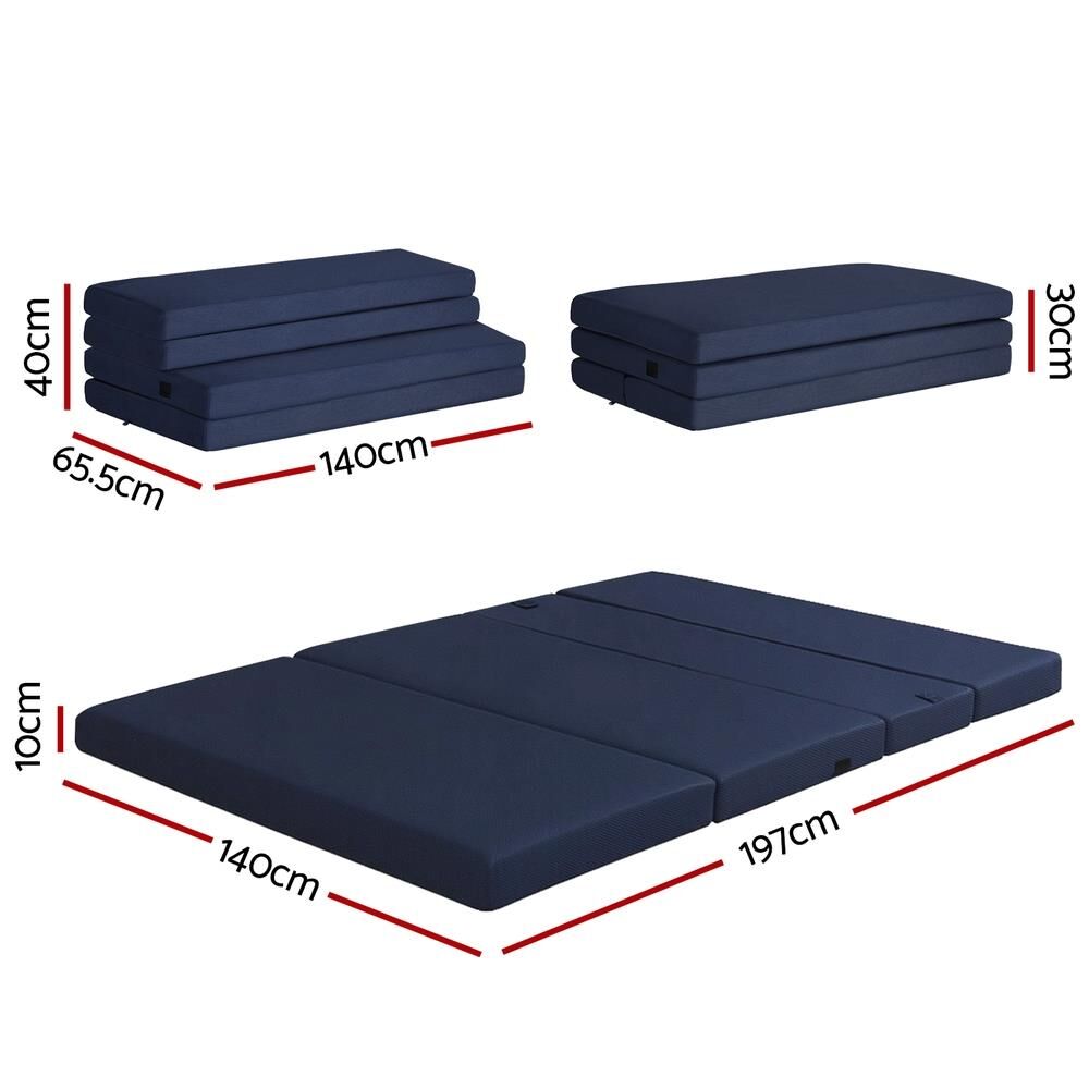 Giselle Foldable Mattress Folding Foam Mattresses Portable Floor Mat Blue Double