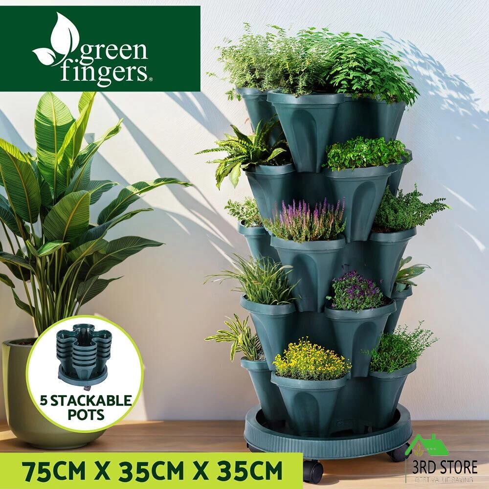 Green Fingers Garden Bed 5 Tier Vertical Garden Strawberry Stackable Planters Herbs Petunias