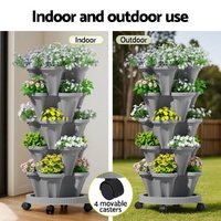 Green Fingers Raised Garden Bed 5 Tier Vertical Garden Grey Strawberry Stackable Planters Herbs Petunias