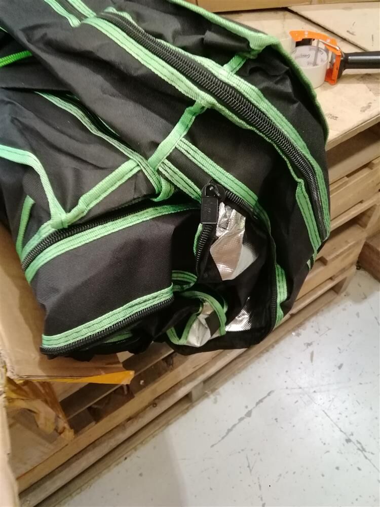 Fabric material: 600D oxford (exterior) and 600D diamond texture Mylar (inner)