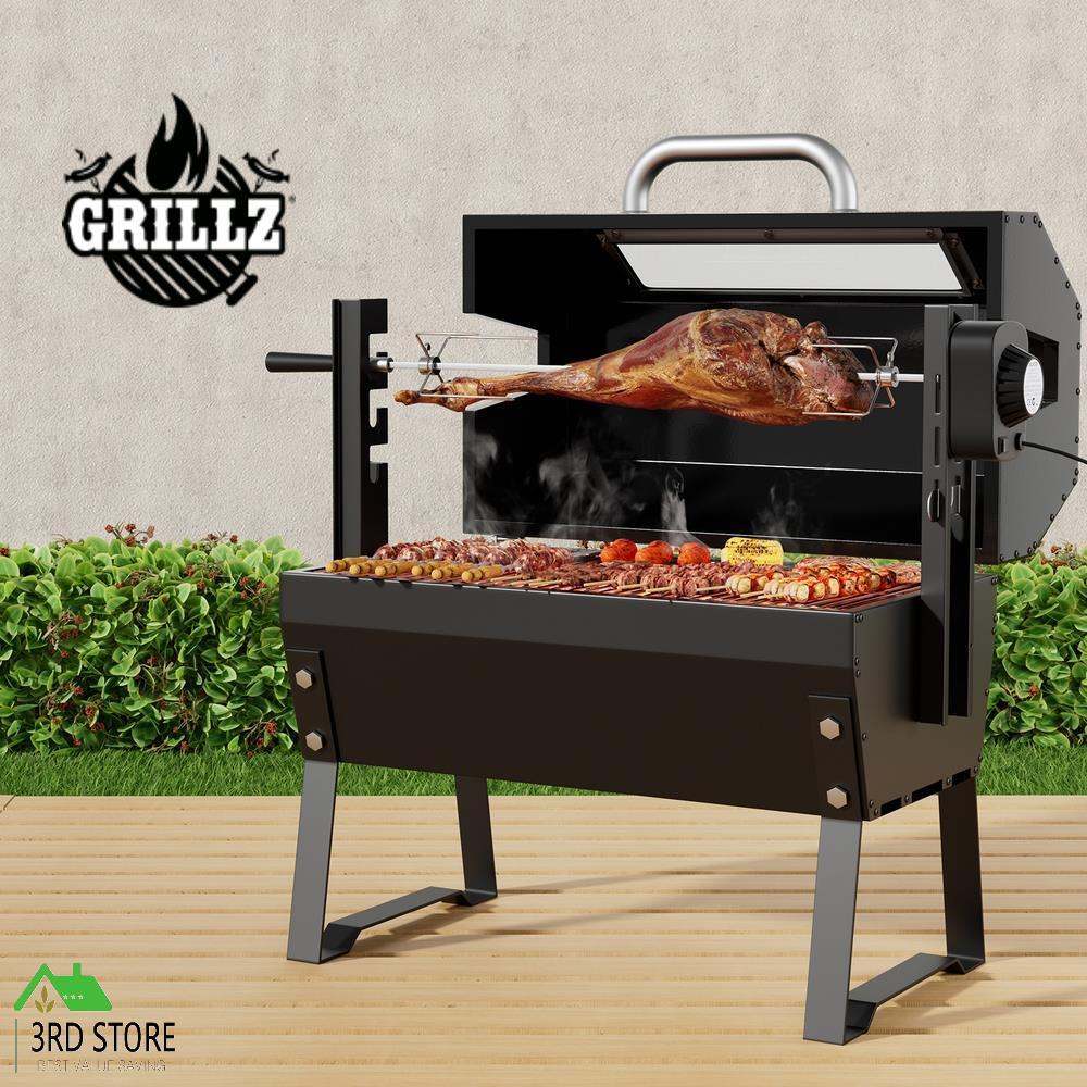 Introducing the Grillz BBQ and Grill, the ultimate 2-in-1 cooking companion for all your outdoor adventures! Crafted with heavy-duty cold rolled steel construction, this grill is built to withstand the test of time. The 304 stainless steel grill plate and rotisserie ensure even heat distribution and superior cooking results every time. With an SAA-approved electric motor and 3 adjustable rotisserie height levels, you have full control over your grilling experience. The flip-up door with a steel handle and the wide window allow for easy access and monitoring of your delicious creations. The spacious charcoal rack and robust steel legs provide ample space for all your grilling needs. Whether you're hosting a backyard party, tending to your garden, or embarking on a camping trip, the Grillz BBQ and grill is the perfect companion for all your outdoor cooking adventures.