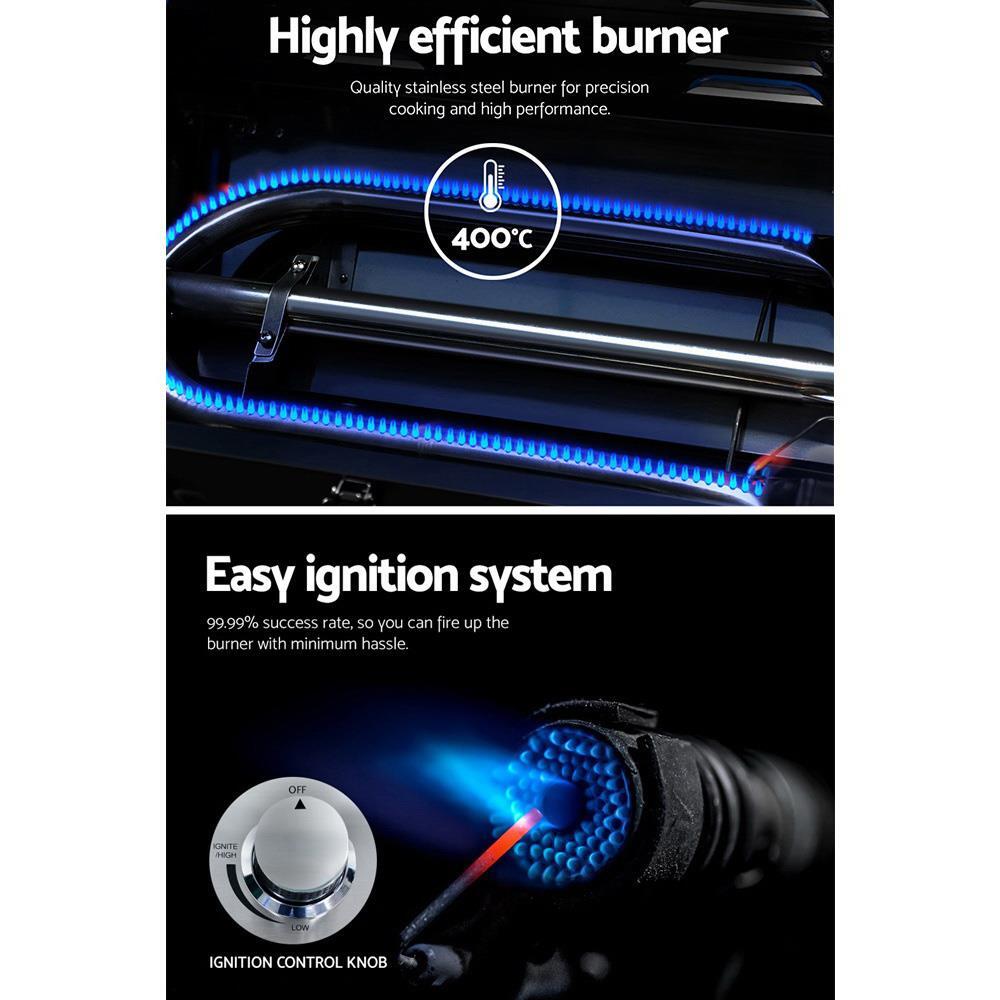 Have BBQ will eat. And the Grillz Portable Gas BBQ is just perfect for a BBQ anytime, anywhere. Made from durable and high quality stainless steel, the BBQ comes with a convenient fold-up design with retractable steel legs, large front carry handle and a locking lid. Great features include a double-face grill plate for different styles of cooking, a 12,000BTU stainless steel U-shape burner with high heart conduction for better efficiency, safe piezo electric twist start ignition, integrated thermometer for enhanced cooking, grease collection tray for easy cleaning after and a dedicated flame tamer to prevent food waste from dropping onto the burner. Together with its large cooking area, the Grillz Portable Gas BBQ is right at home with sumptuous meals ready in minutes.