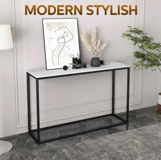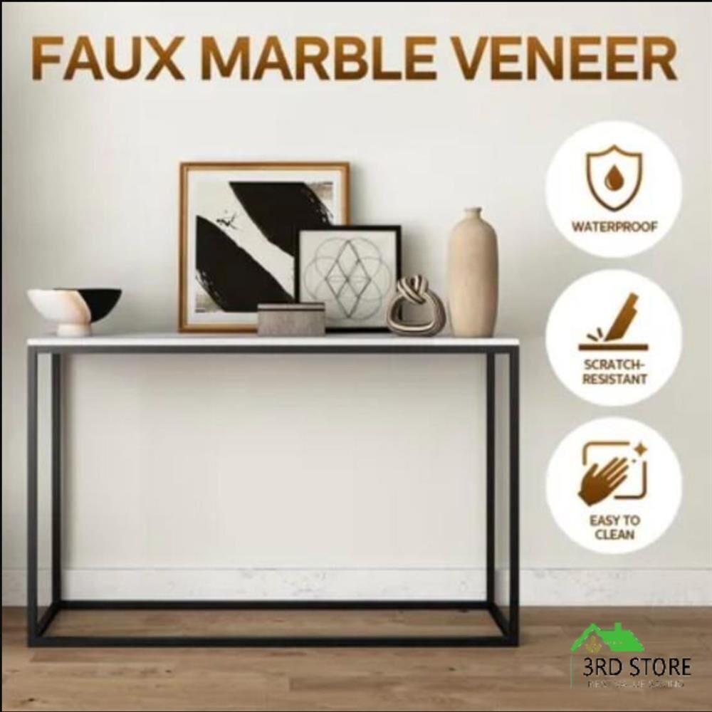 Hall Console Table Entrance End Sofa TV Shelf Faux Marble Plant Stand Black