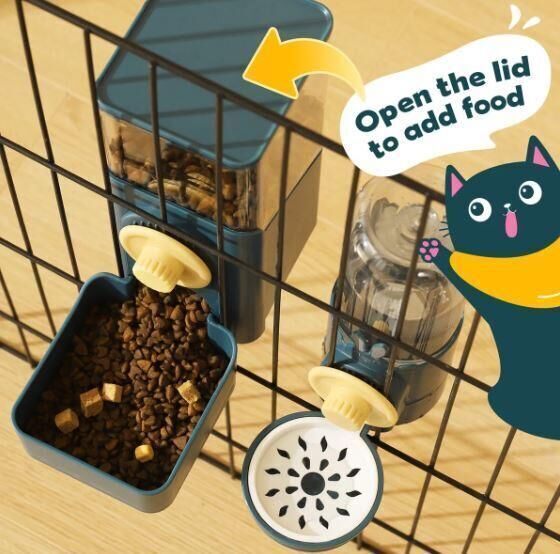 - Automatic Water Dispenser and Food Feeder: The water and food feeder pack is a good helper for your pets. The water bottle releases water only when your pets need it, saving you time and effort.