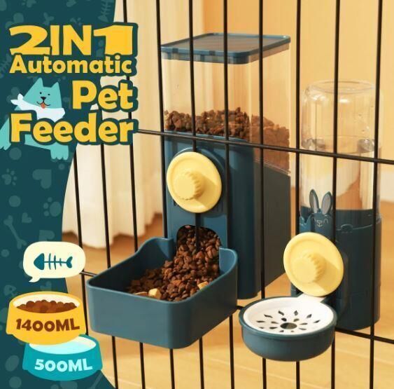Hanging Automatic Dog Cat Feeder 500ml Water Dispenser 1.4L Food Bowl Pets Feed
