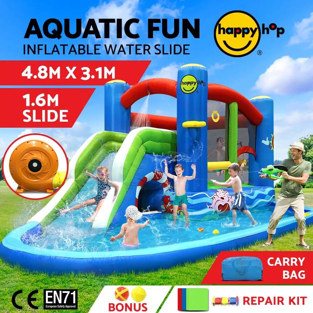 Happy Hop Kids Inflatable Water Slide Splash Jumping Castle Bouncer Play Toy