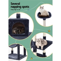 A purrfect way to keep your cats entertained! Our i.Pet Freesia medium-sized cat trees cater to your feline friend's scratching instinct and playtime and provide enough space to relax and nap. It's absolutely a feline wonderland. Our cat tree features a bed cubicle, a standing activity ball, a hammock, a tunnel, and platforms at varying heights for tom and tabby to have hours of fun scratching, hunting, climbing, jumping, hopping, and playing with favourites or simply lounging around. Additionally, with its sisal-covered scratching post, you can rest assured that your furniture will stay scratch-free. It also has comfortable velvet upholstered surfaces, ideal for napping after a long playtime. For your peace of mind, our cat trees boast a firm base and sturdy fir wood construction. This ensures good stability and durability. With so many playing and napping spots, our Freesia cat tree is just right for your cat to have its energetic exploration.