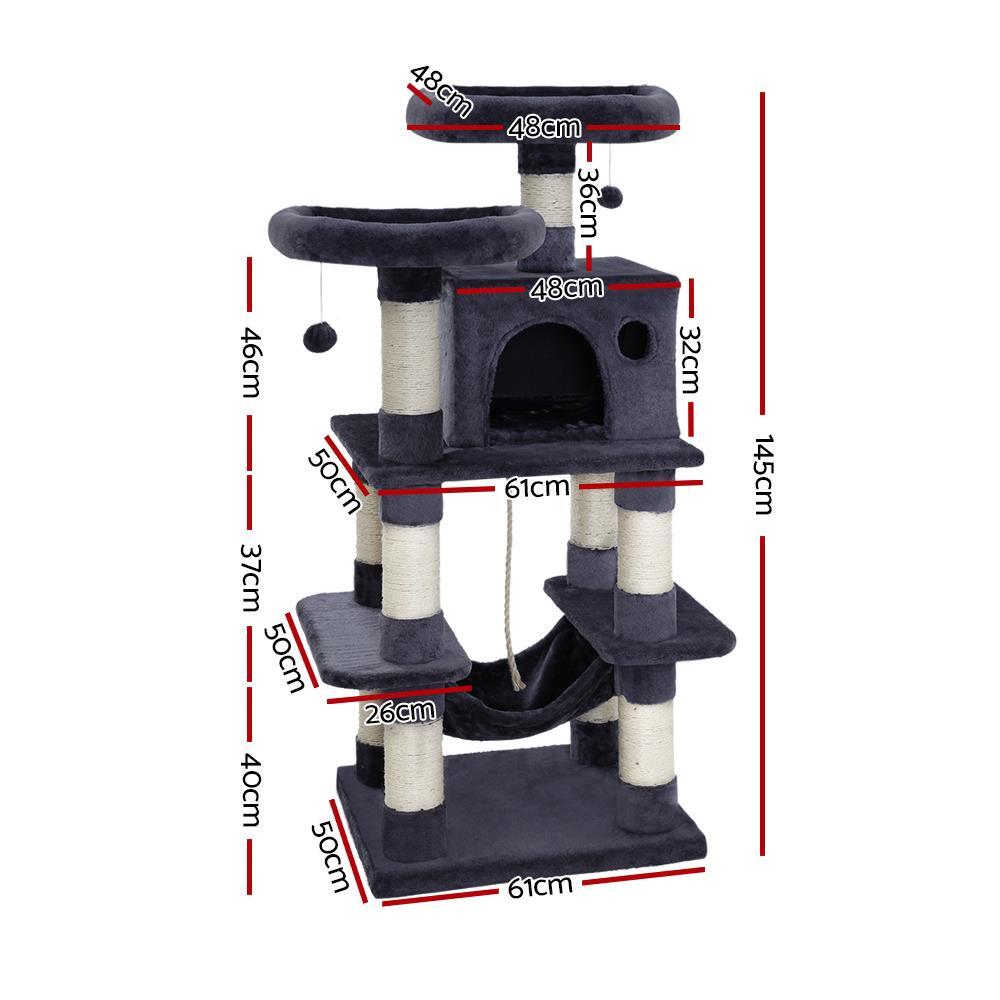 i.Pet Cat Tree Trees Scratching Post Scratcher Tower Condo House Grey 145cm