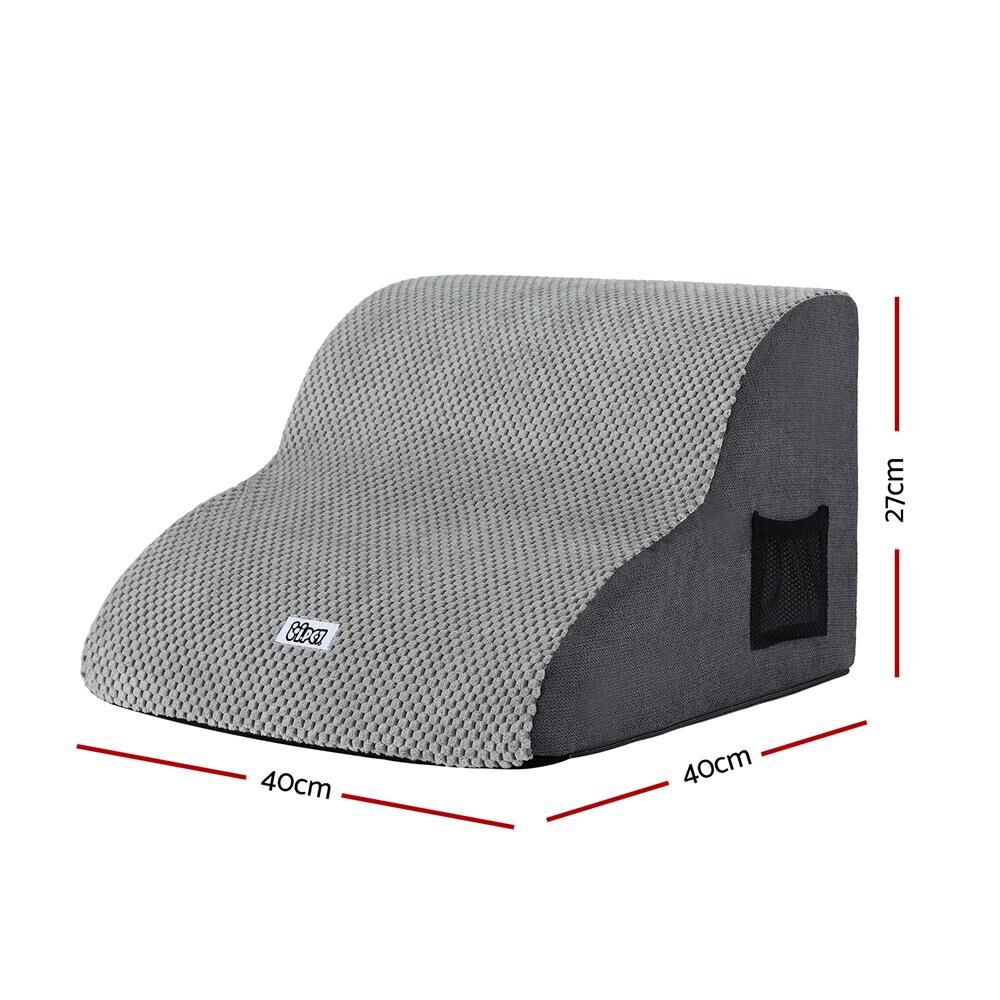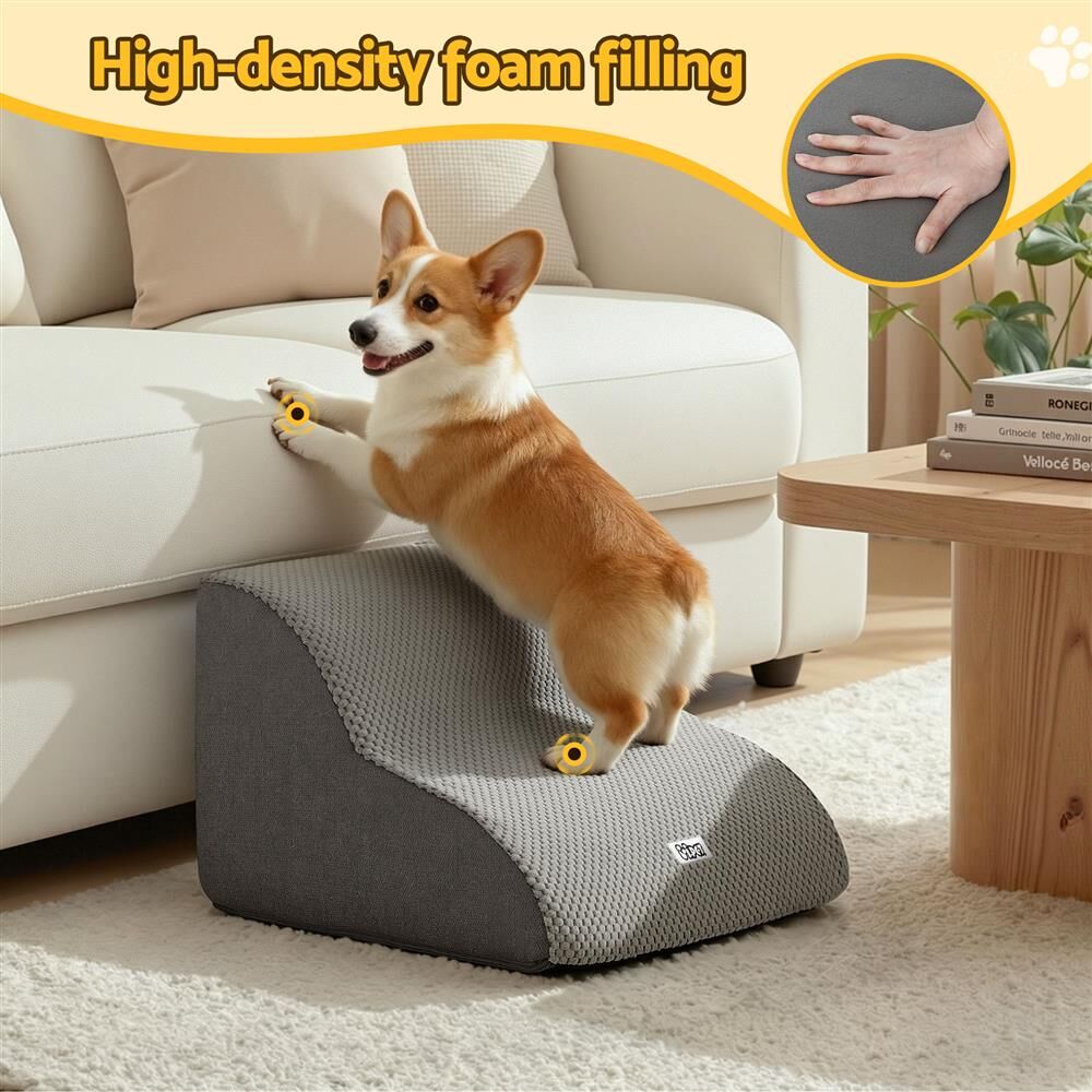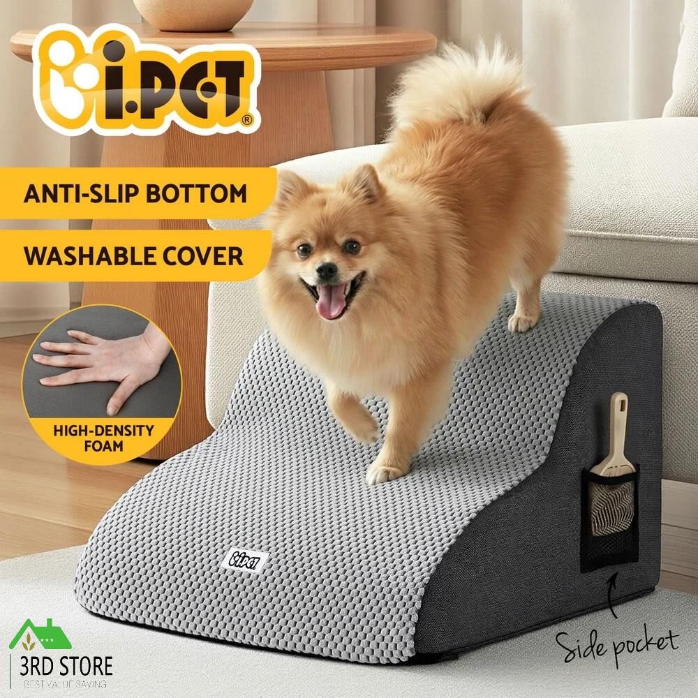 Give your beloved furry mate a helping hand with the i.Pet 2-Step Dog Ramp. Designed with the comfort and safety of your pet in mind, this ramp is the perfect solution for smaller dogs, older pets, or those with mobility issues who need a little boost to reach the sofa, bed, or car.Superior Support and Stability Unlike flimsy alternatives, this pet ramp features high-density foam construction, providing robust and reliable support for your dog's joints. The solid foam core ensures the steps maintain their shape and integrity, making every ascent and descent safe and steady. For extra peace of mind, the ramp is fitted with a non-slip base to prevent any unwanted movement on smooth floors like tiles or polished timber.Thoughtful Design for Pet Comfort The surface is covered in a soft, yet durable, non-slip suede fabric. This texture provides excellent grip for your dog's paws, ensuring a confident climb while being gentle on their pads. The thoughtful design also includes a water-resistant bottom layer, offering protection against accidental spills or moisture, making it a practical addition to any Aussie home.Easy Care and Convenience We know that pet ownership means occasional messes. That's why this dog ramp is designed for ultimate convenience. The cover is detachable for easy cleaning and is fully machine washable, so you can keep your pet's ramp fresh and hygienic with minimal fuss. Alternatively, you can hand wash and air dry the cover.Smart Storage and Setup The i.Pet dog ramp is delivered vacuum packed, meaning it arrives compactly and is easy to handle. Once unpacked, the foam quickly expands to its full, supportive shape. It also features a handy side storage bag, perfect for keeping your dog's favourite toys, treats, or grooming tools right where you need them.