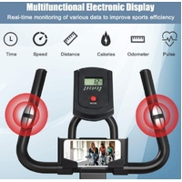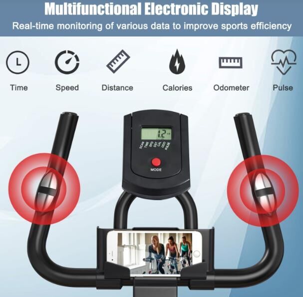 ● Multifunctional Display and Phone Holder: The digital display shows time, distance, speed, odometer, pulse and calories to help you monitor your exercise data. The grips on both sides can record the heart rate for you to adjust the rhythm of exercise. The phone holder allows you to listen to music and watch videos while exercising.