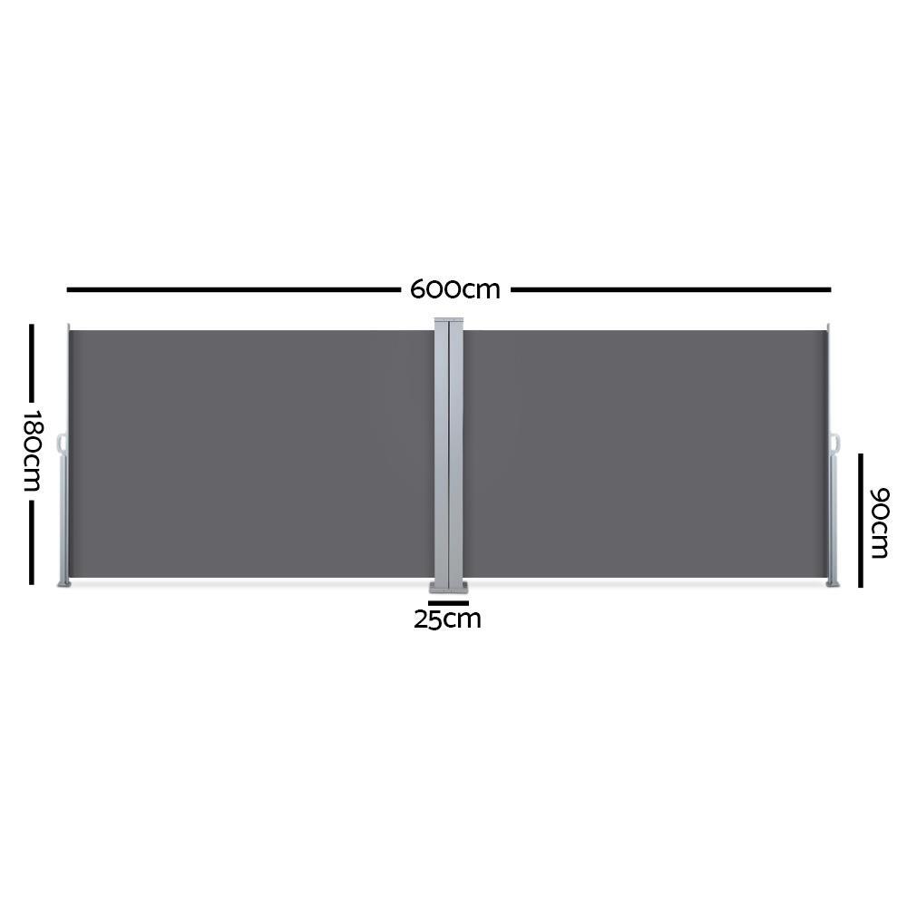 Made from UV-resistant and tear resistant polyester with robust steel frame, our Instahut Retractable Double-sided Awning is perfect for outdoor application. It is excellent at blocking prevailing wind and low-lying sun, as well as providing additional privacy. It has a stable base and can be installed at flexible angles of up to 90 degree. The awning has a width of 6m and has an automatic roll-back function for easy keeping.