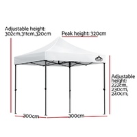 Instahut Gazebo Pop Up Marquee 3x3 Outdoor Tent Folding Wedding Gazebos White