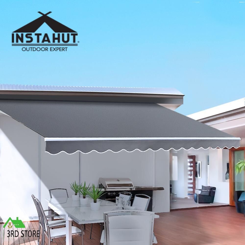 Instahut Folding Arm Awning Outdoor Awning Retractable Sunshade 2.5Mx2M Grey