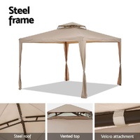 Instahut Gazebo Marquee 3m Outdoor Event Tent Camping Party Mesh Wall Canopy Brown