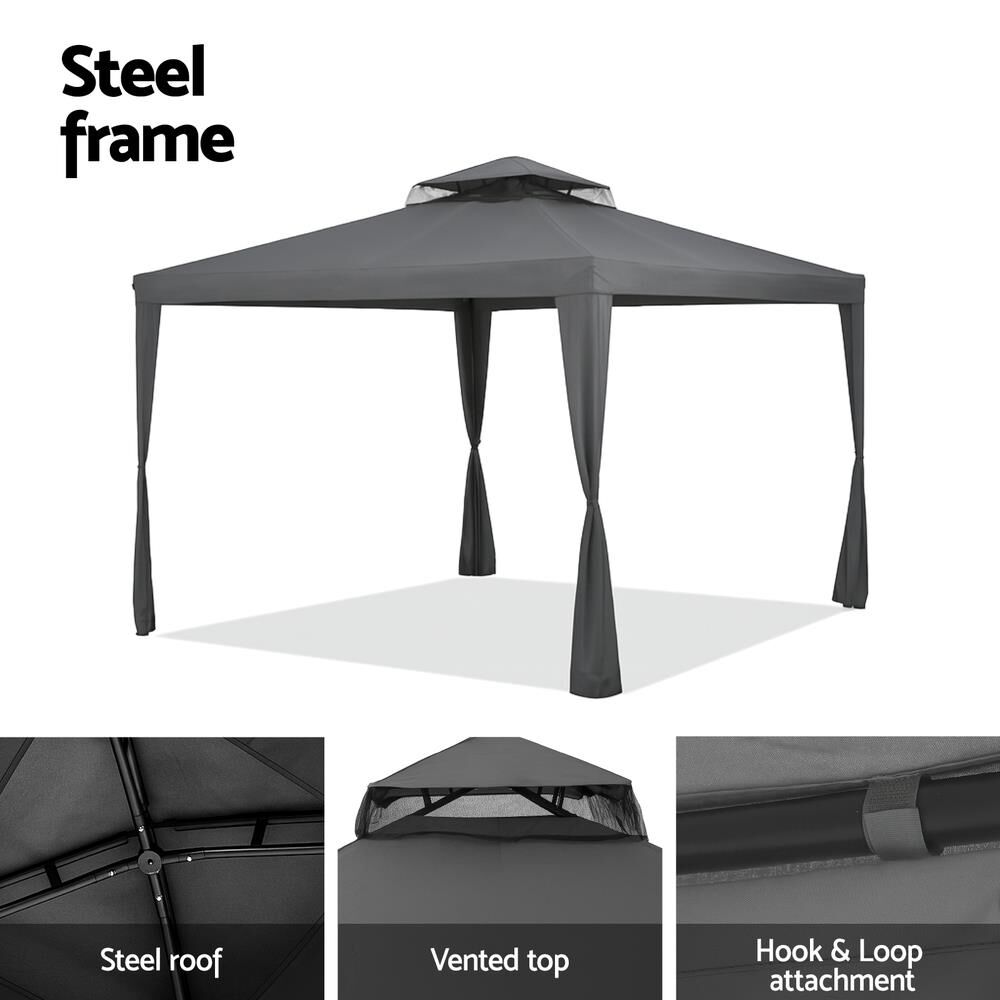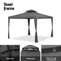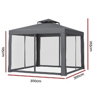 Instahut Gazebo Marquee 3m Outdoor Event Tent Camping Party Mesh Wall Canopy Grey