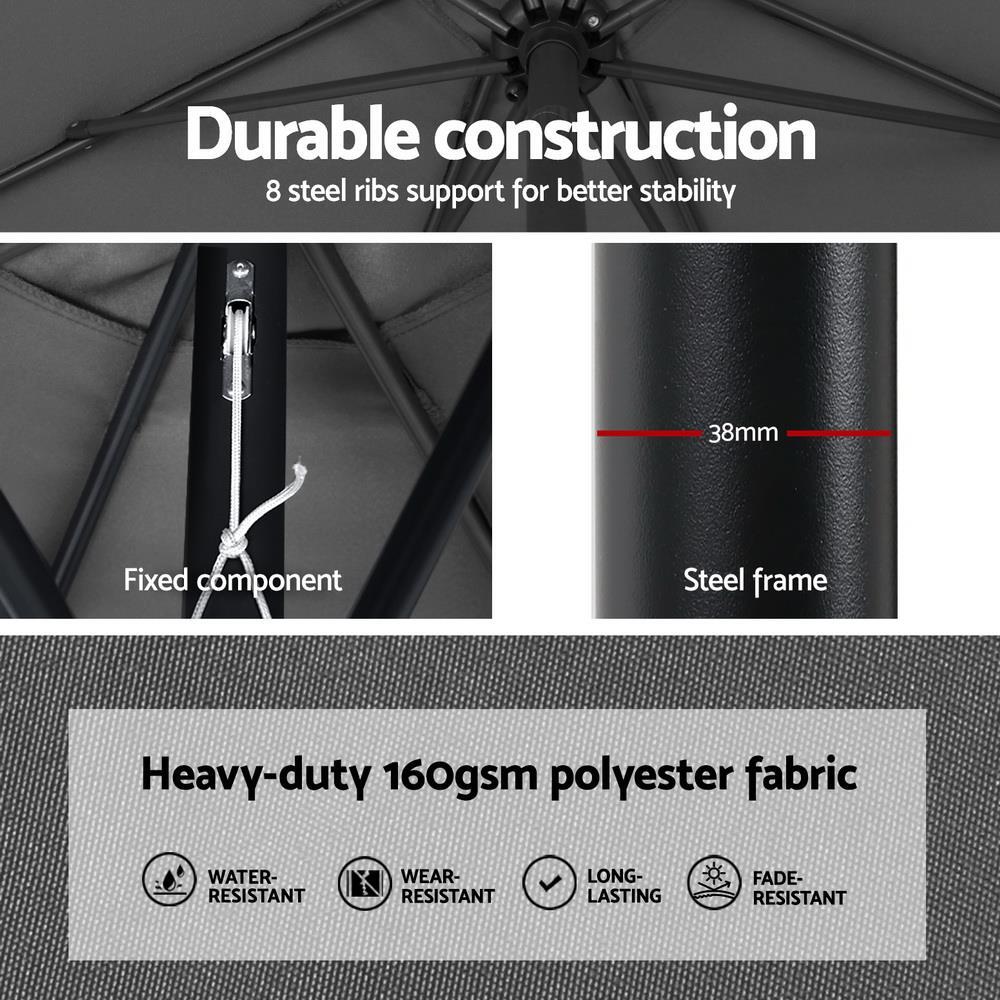 Introducing our Instahut Outdoor Umbrella with UV50+ polyester canopy, resistant to water and wear. Built with a sturdy steel frame for durability. Features an easy open/close system with a user-friendly crank for effortless operation. Note: Umbrella base not included