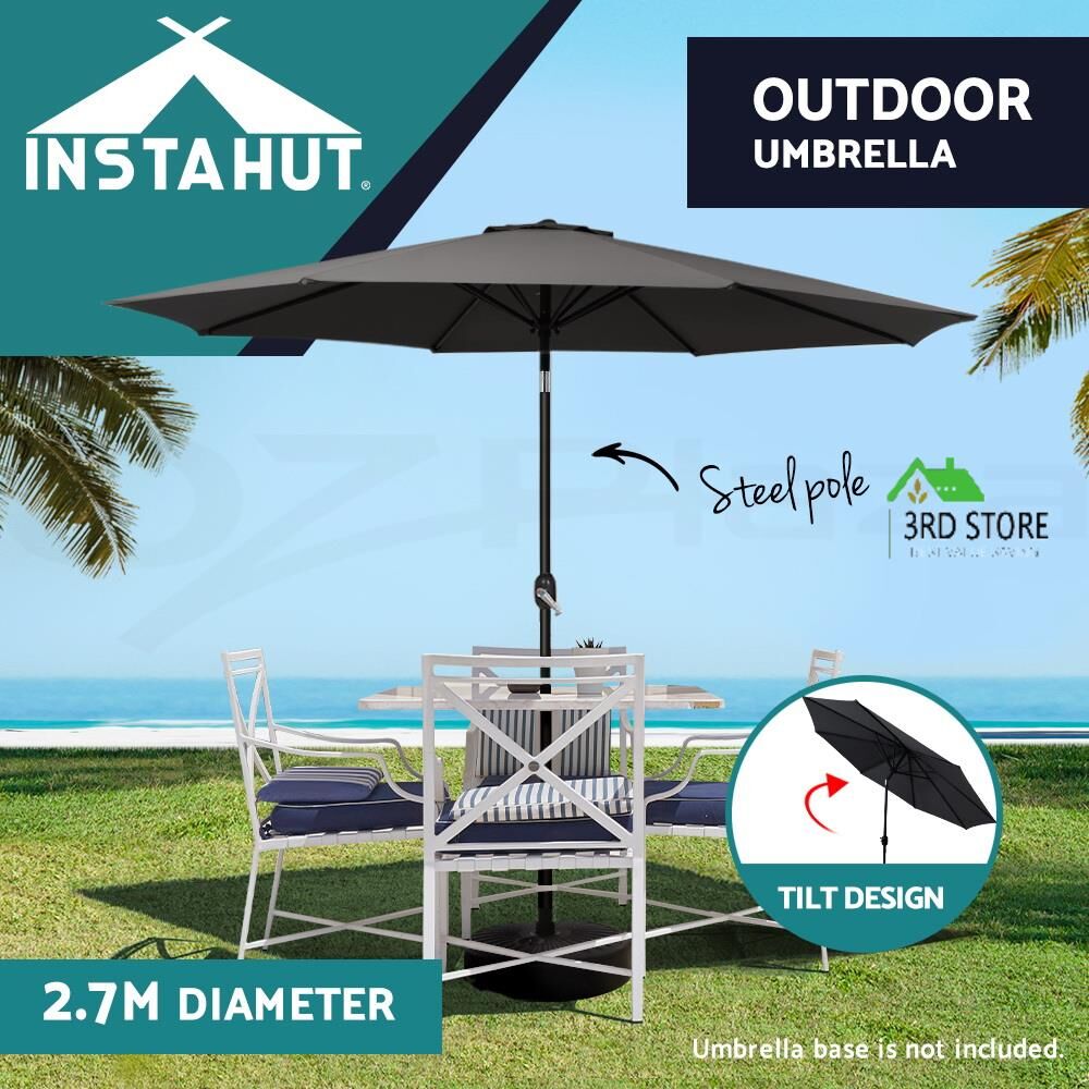 Instahut Outdoor Umbrella 2.7m Beach Pole Garden Tilt Sun Patio UV Charcoal