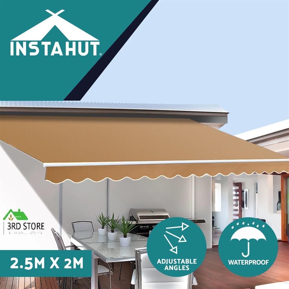 Instahut Retractable Folding Arm Awning Manual Sunshade 2.5Mx2M Beige