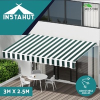 Instahut Retractable Folding Arm Awning Manual Sunshade 3Mx2.5M Green White