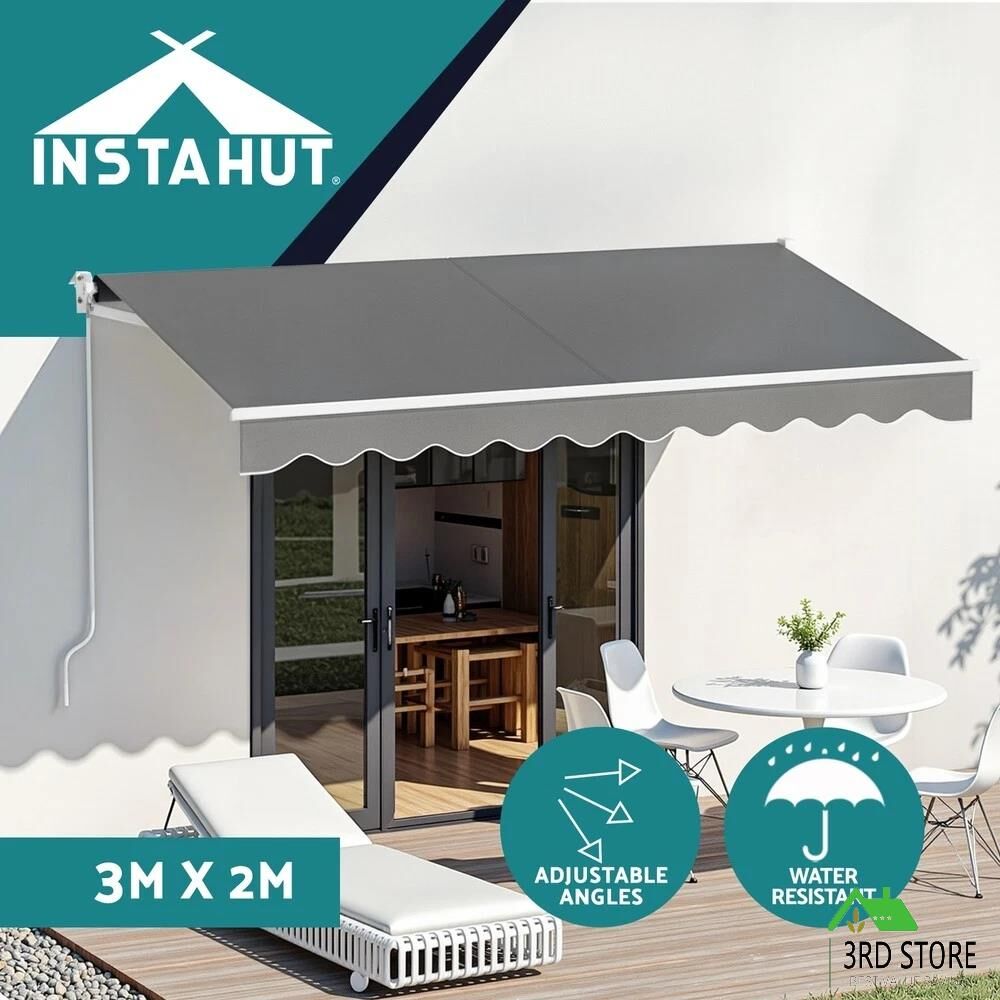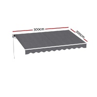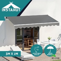 Instahut Retractable Folding Arm Awning Manual Sunshade 3M X 2M Grey