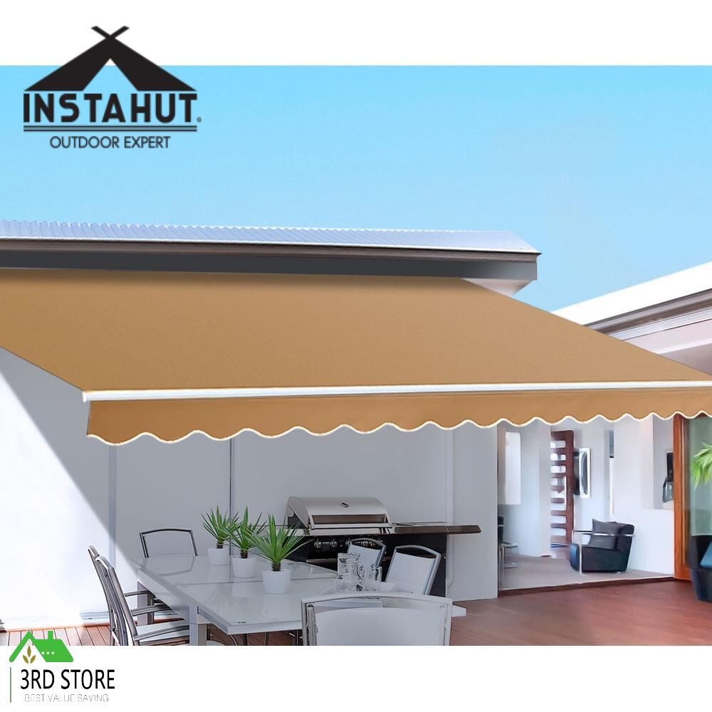 Instahut Retractable Folding Arm Awning Motorised Outdoor Sunshade 4X2.5M Beige