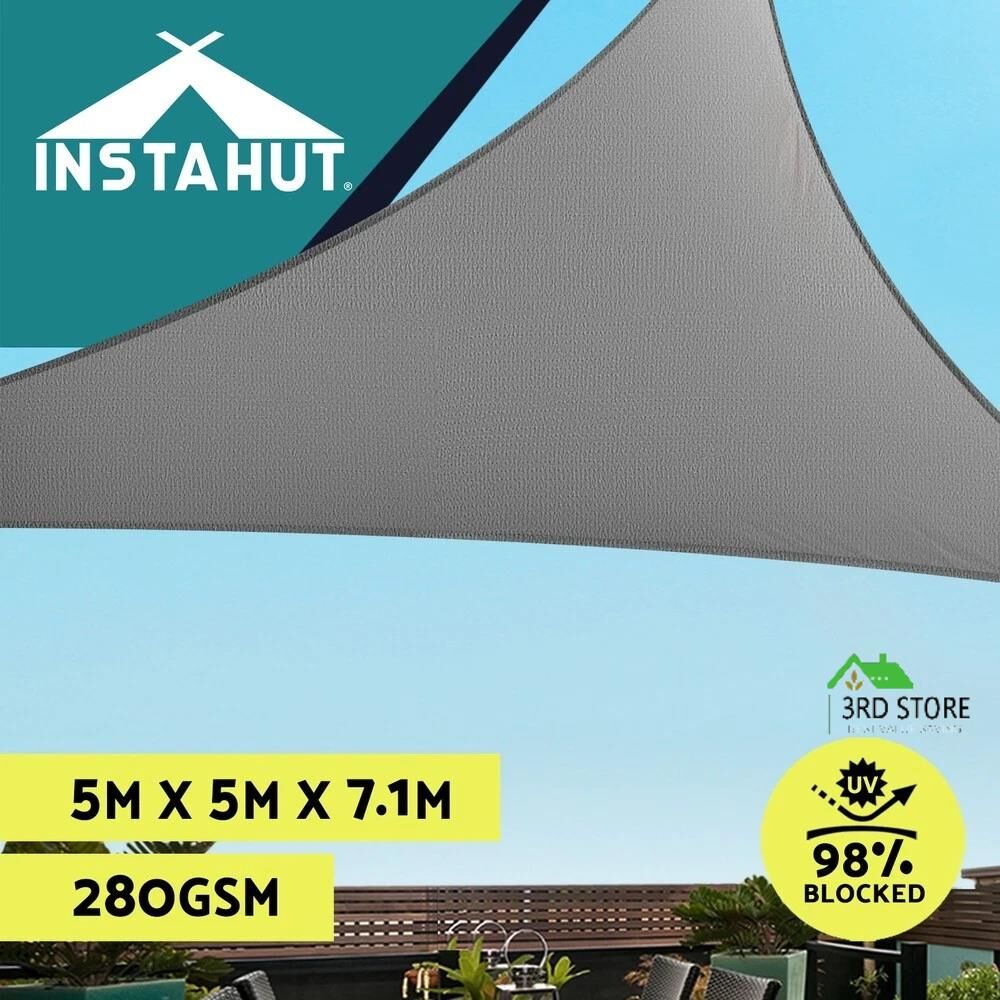 Instahut Shade Sail Cloth Shadecloth Canopy Triangle 280gsm 5x5x7.1m