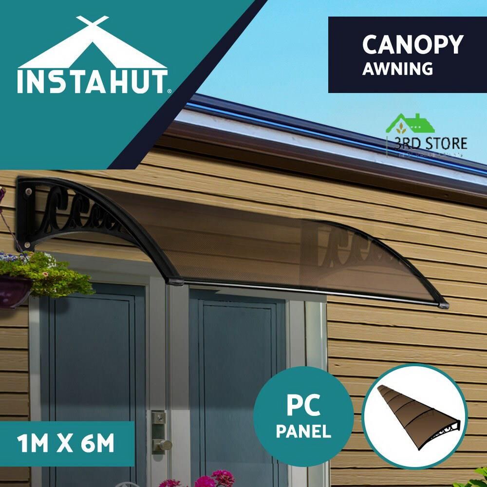 Instahut Window Door Awning Door Canopy Patio UV Sun Shield BROWN 1mx6m DIY