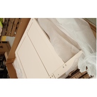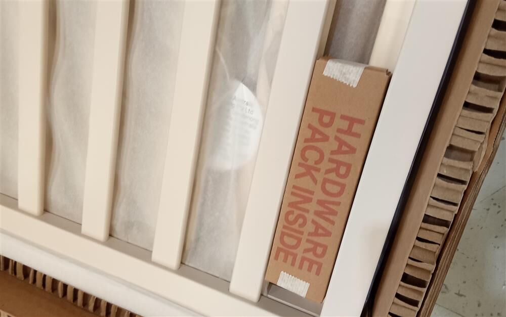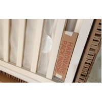 Timber cot made from Pine, poplar plywood with medium density fibreboard (MDF) end boards.