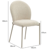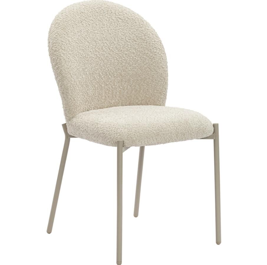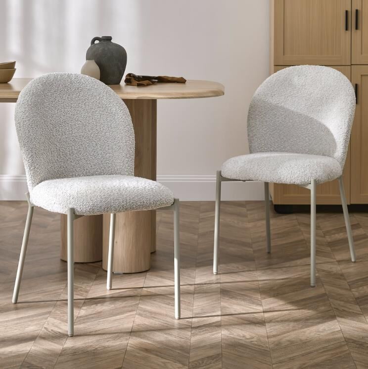 The petite frame is ideal if you're short on space or you want to make the most of a more compact dining table. The rounded seat and back have a modern feel, and the contemporary legs offset that softness. Trending boucle upholstery adds visual interest to your dining room, while bringing soft comfort to the space. The neutral palette is elegant and versatile.