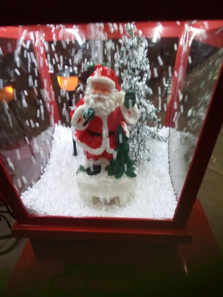 Christmas figures in lamp (Santa, tree, lights)