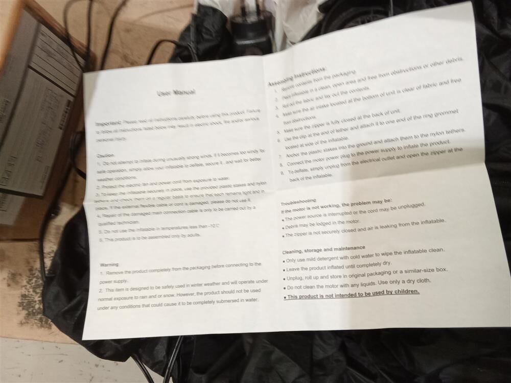 Add festive charm to your home with our Jingle Jolly Christmas Inflatable. Crafted with water-repellent and UV-resistant materials, it is perfect for indoor and outdoor use. The built-in air blower ensures effortless inflation. For quick storage, simply unzip and deflate. Pegs and ropes are also included for secure ground anchoring, bringing you peace of mind. Create a magical holiday display effortlessly with this delightful inflatable centerpiece!