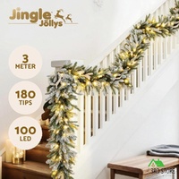 Jingle Jollys 3M Christmas Garland Pre-lit LED Lights Snow Frosted Tips Decor