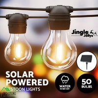 Jingle Jollys 50m Festoon Lights Solar LED String Light Outdoor Christmas Party
